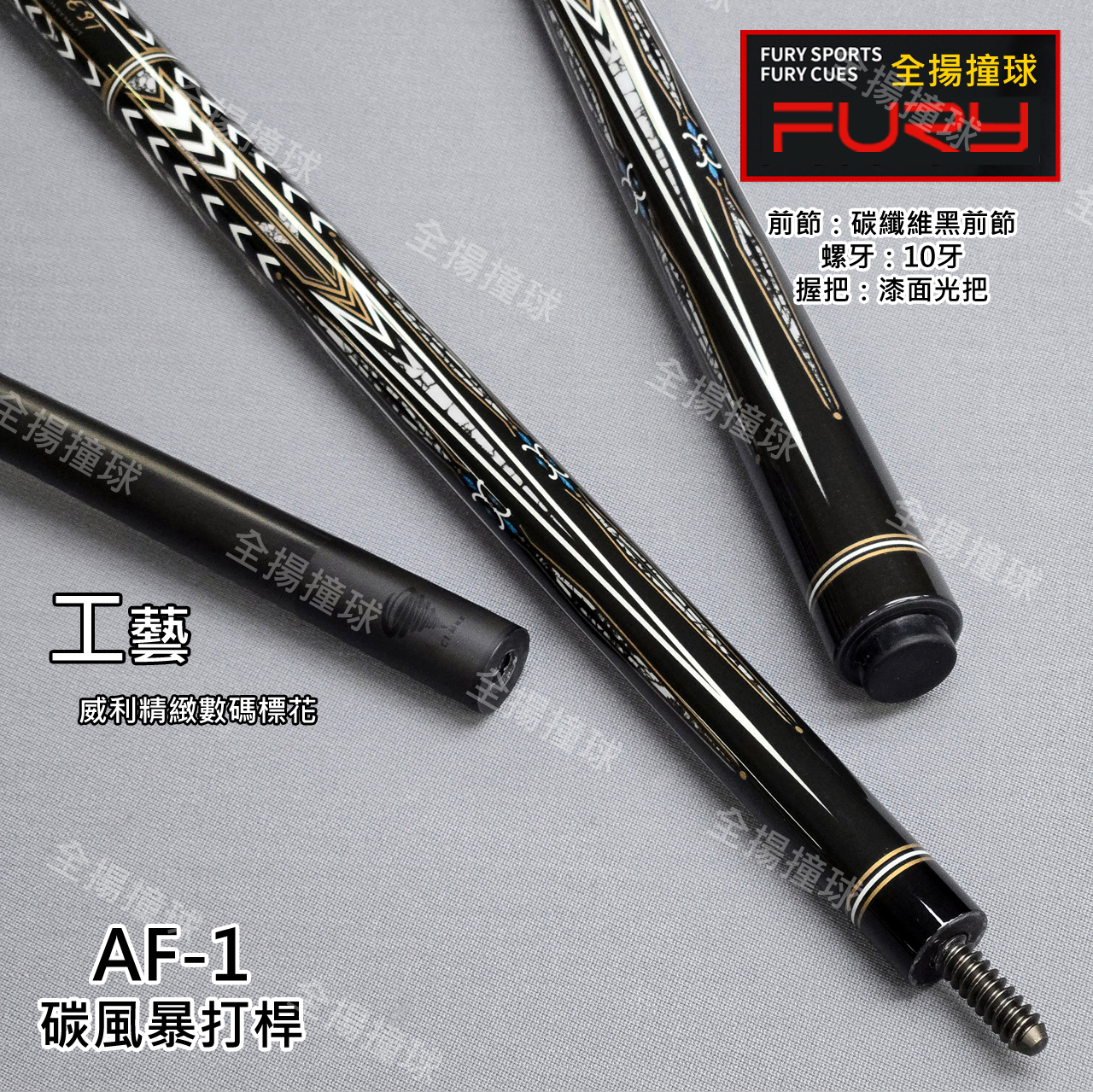 全揚撞球 美國 FURY威利【AF-1碳風暴打桿】10牙-撞球桿