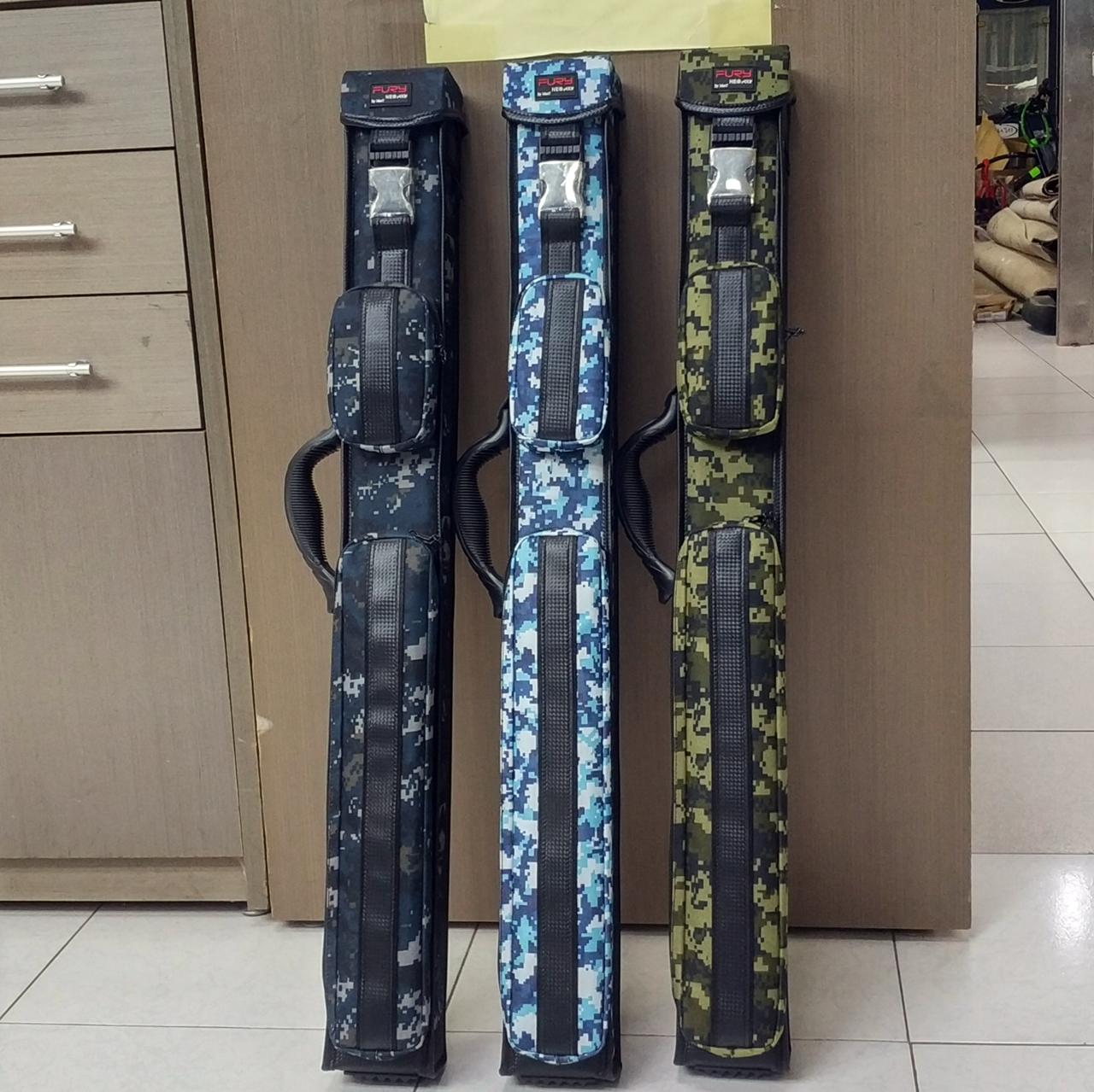 全揚撞球 威利FURY【方形 5孔 迷彩系列(黑、藍、綠)】隔布-球筒-球袋-球盒-背袋