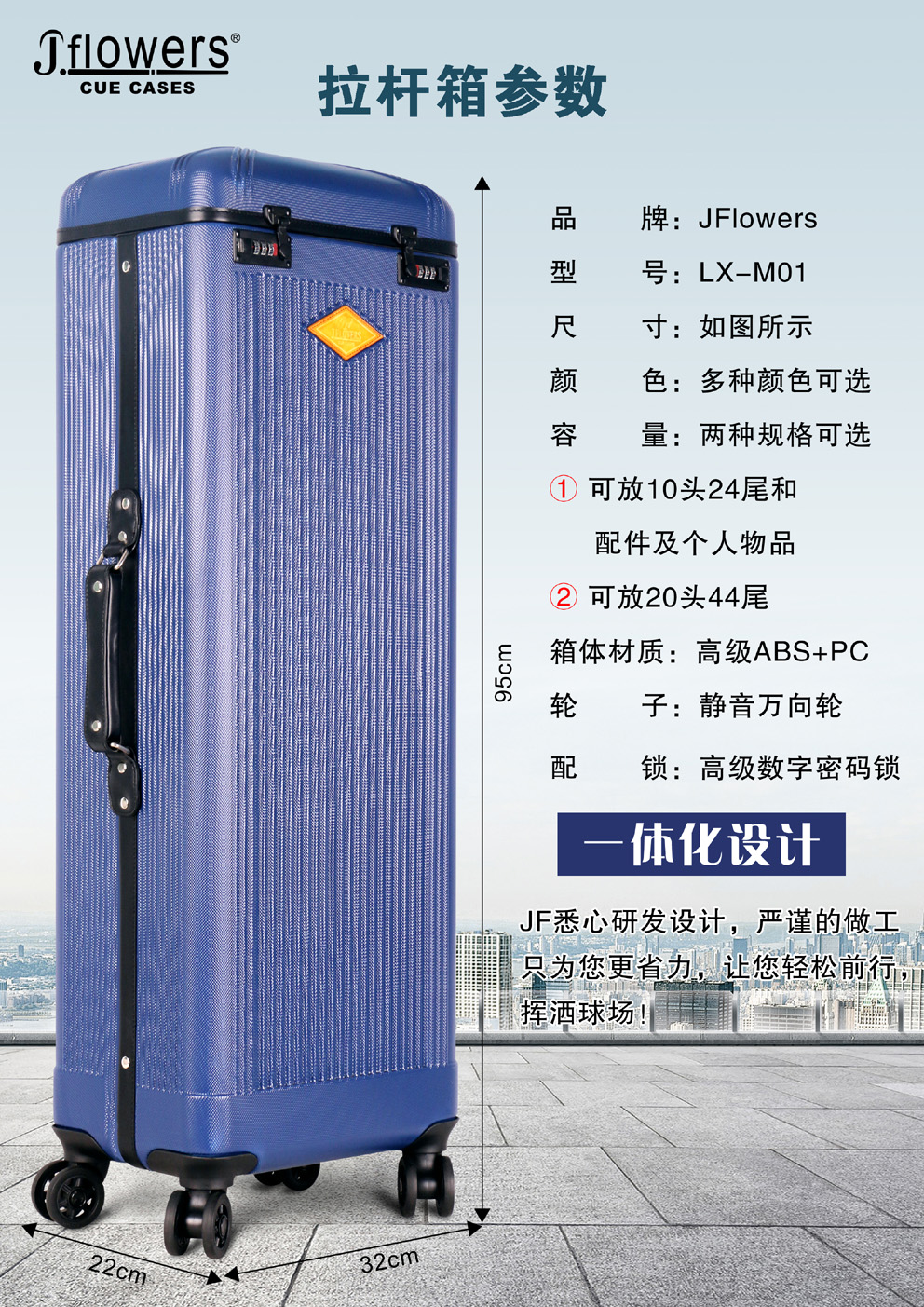 全揚撞球 JFLOWERS【JF大容量球桿拉桿箱(20B44S)】-球筒-行李箱-撞球杆球盒