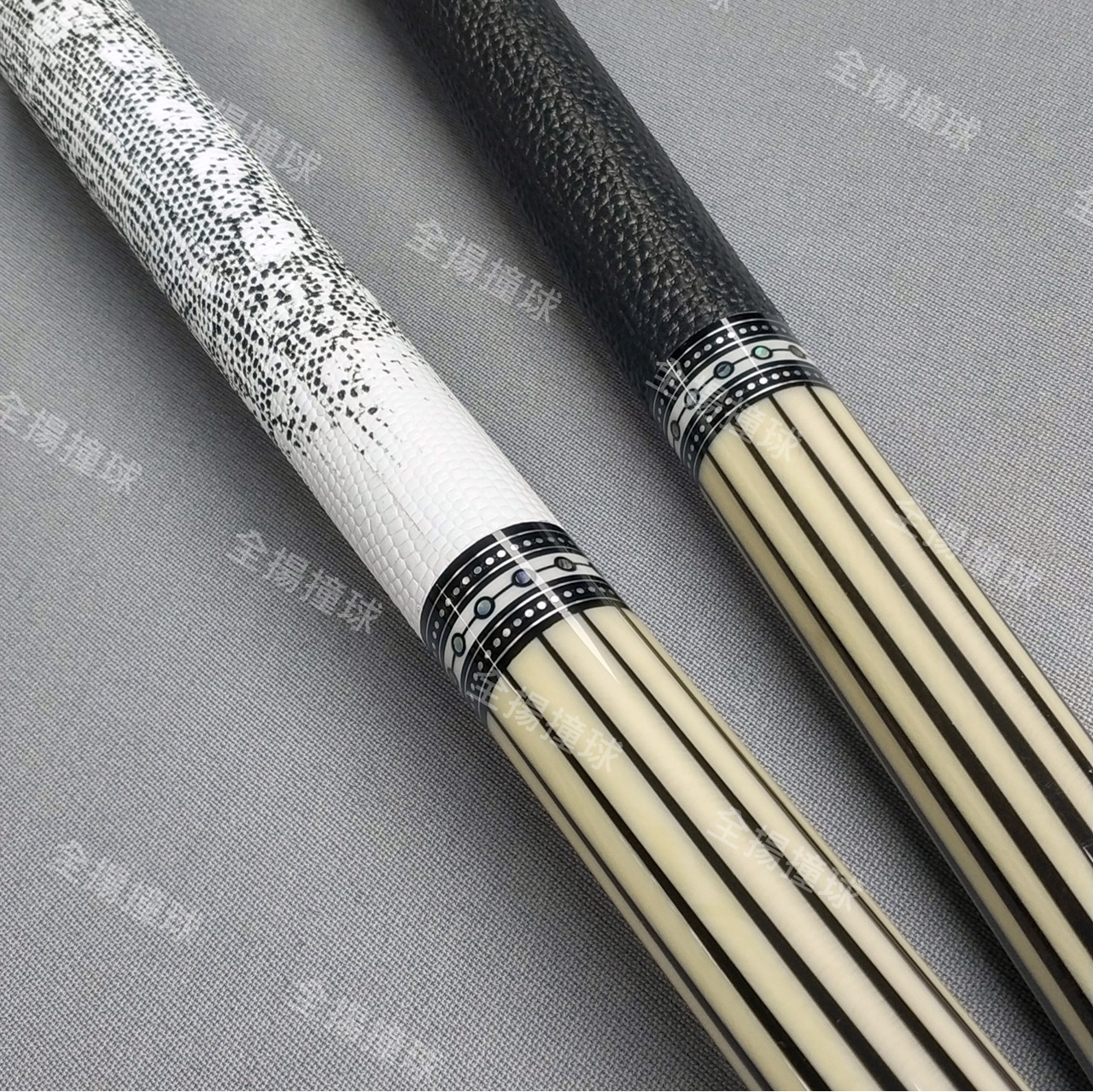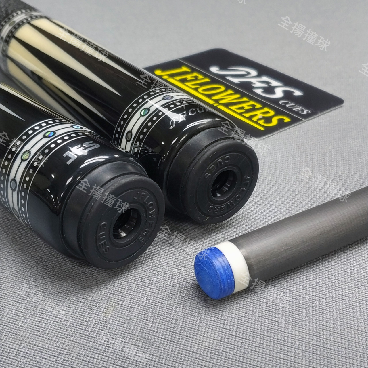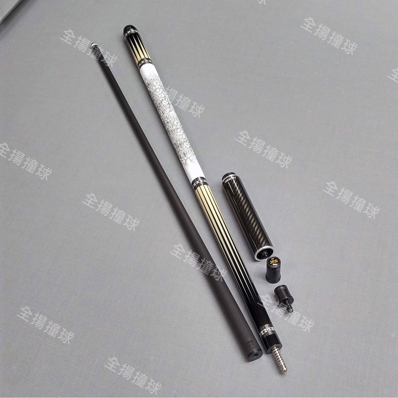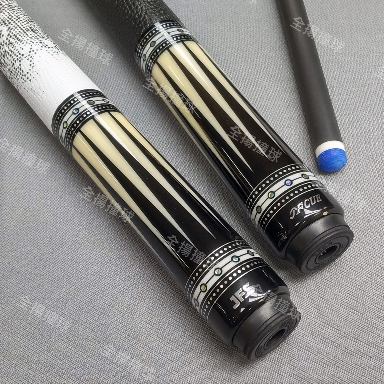 全揚撞球 JFLOWERS【JF60-7-光芒-皮握把(白、黑)】8牙-撞球桿-黑科技撞球桿
