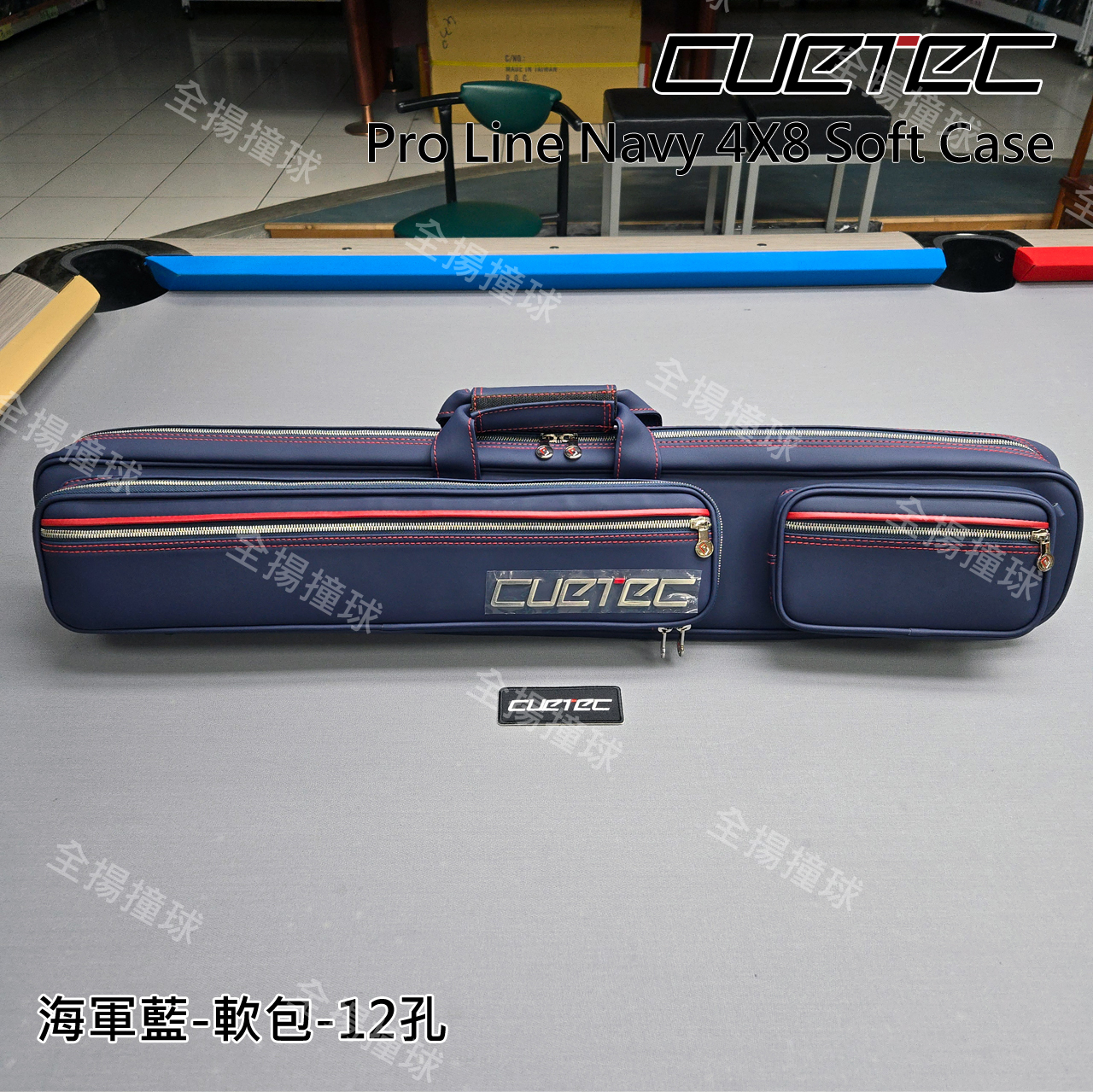 全揚撞球 限量【CUETEC-Pro line 海軍藍 軟包(12孔球筒)】4B8S大小袋-球桿背袋-球盒